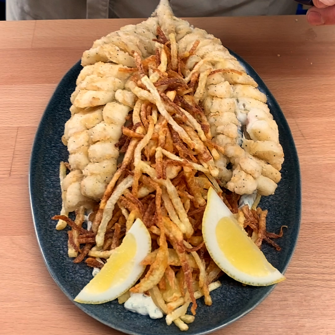 Zum RezeptWir haben das klassische Fish n Chips Rezept ein bisschen aufgepeppt! Köstlicher Wolfsbarsch mit crunchy Pommes - ein wahrer Genuss.