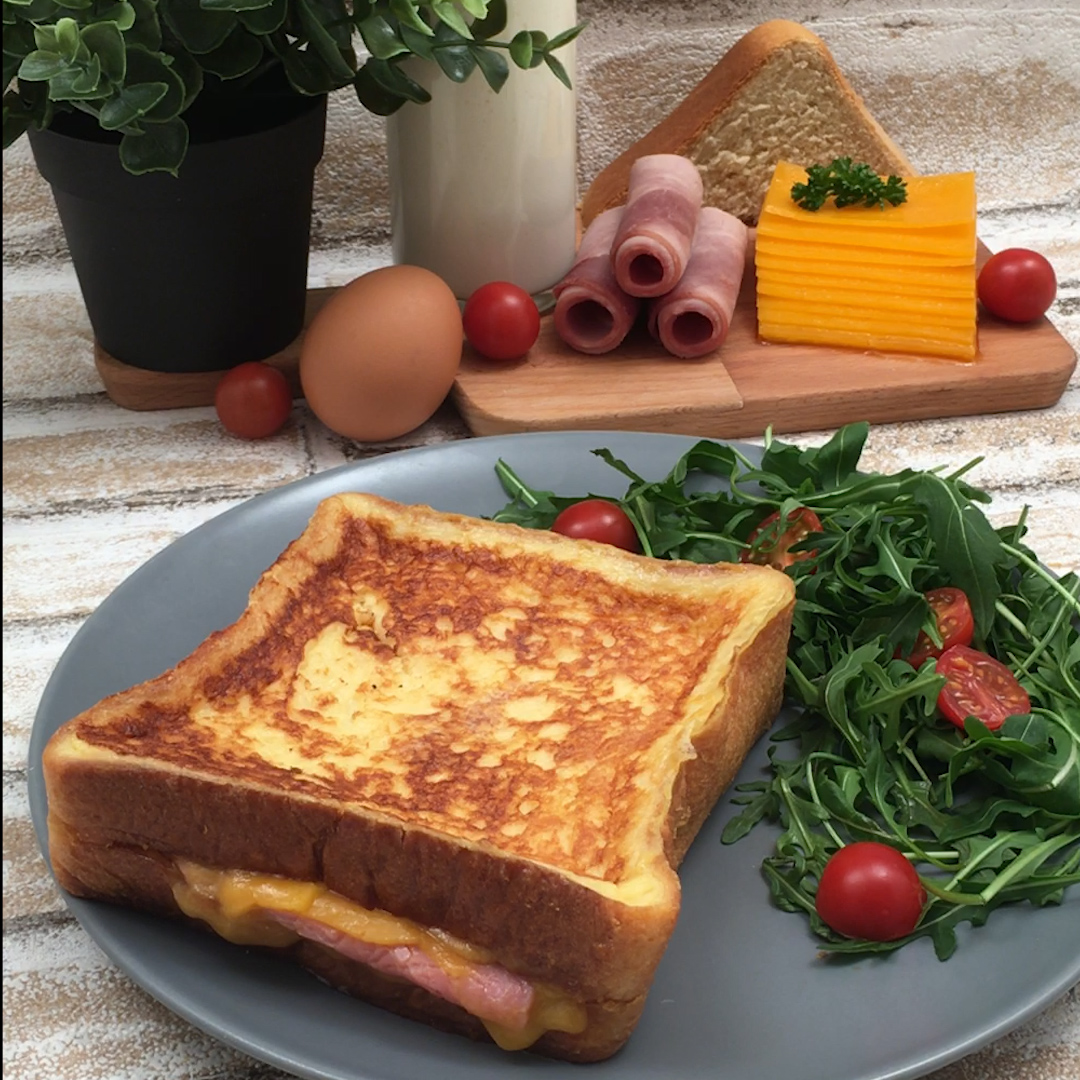 Zum RezeptToastbrot, Schinken, Käse und ein paar Eier - simple aber köstlich! Für ein schnelles Mittagessen mit Frankreich-Touch ist dieses einfache Rezept nur zu empfehlen!