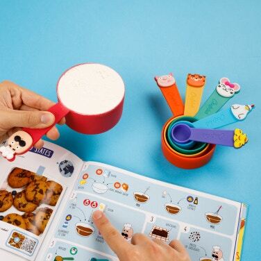 Schluss mit dem mühsamen Abwiegen beim Kochen mit der Familie (ups... wir haben schon wieder vergessen, die Waage zurückzusetzen!) Mit den Chefclub Kids Tassen können Sie alle Zutaten für Ihre Rezepte einfach abmessen: Gramm und Milliliter werden in Figuren umgerechnet! Wie viel Mehl für die Pfannkuchen als Nachmittagssnack? Eine Tasse Schwein und eine Tasse Katze! Los geht's in der Küche.