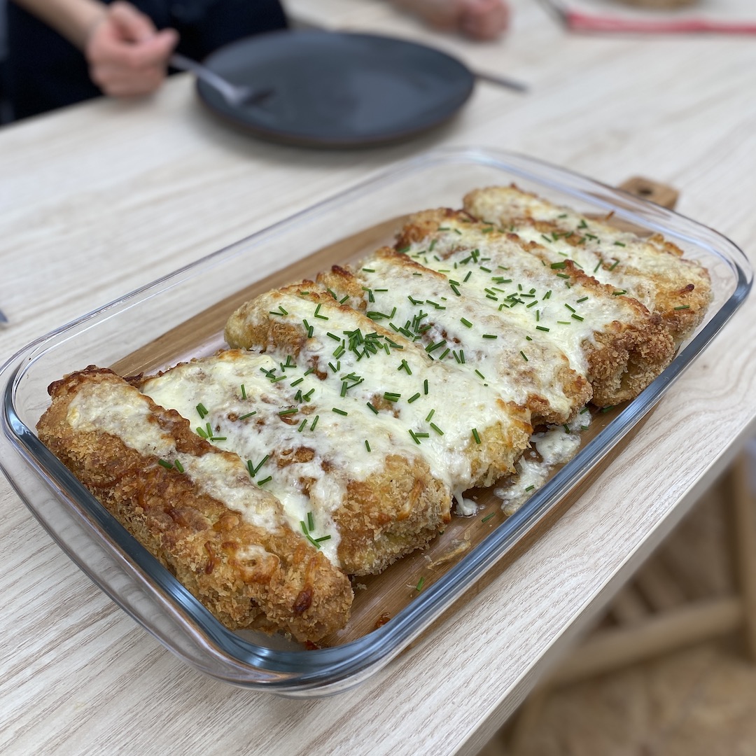 Zum RezeptEin Gericht, das auf jeden Fall satt macht: Panierte Omeletts mit traumhafter Hähnchenfüllung. Proteinreich, schmackhaft und saftig!