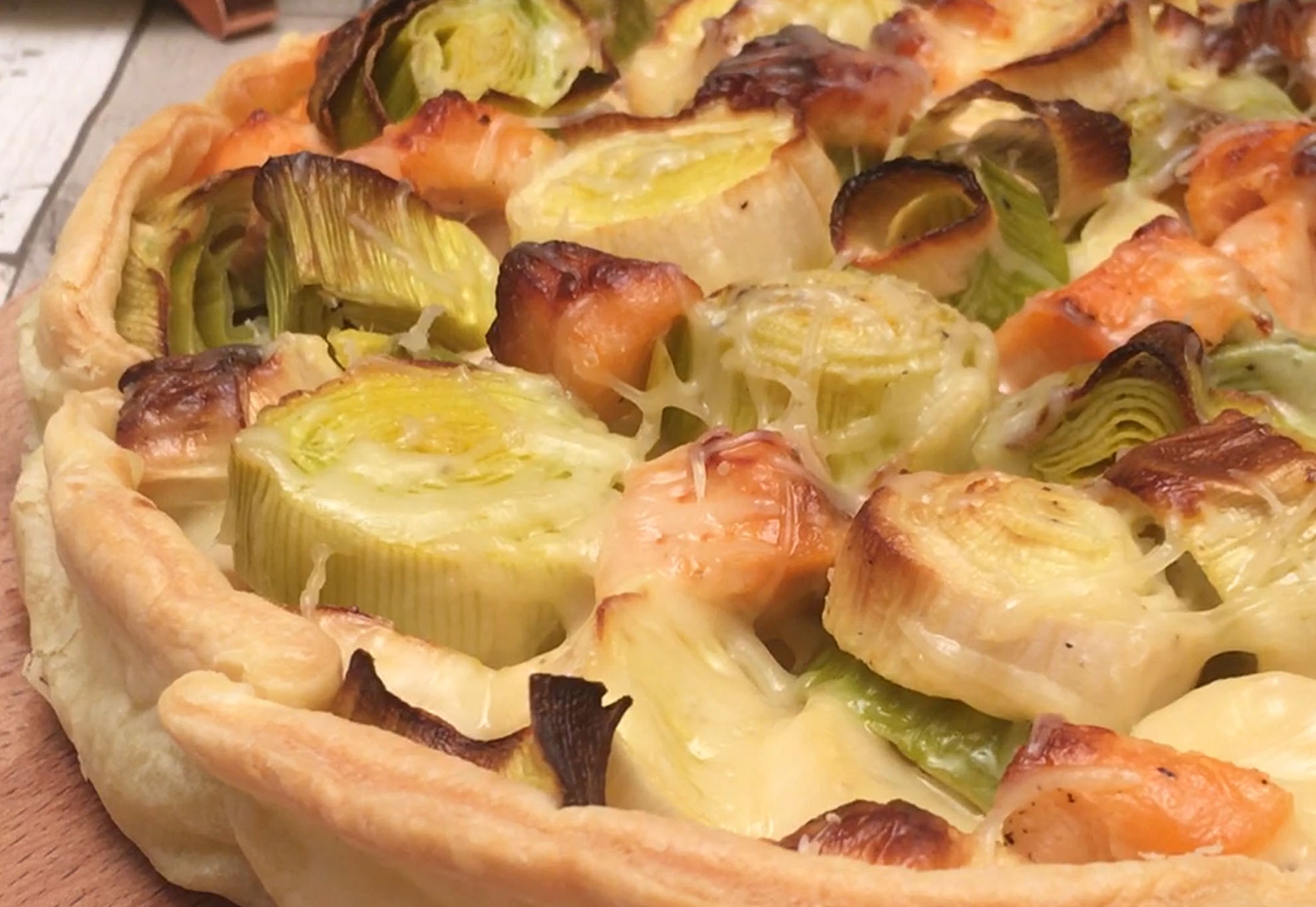 Knusprige Lachs-Tarte mit Compté Käse und Lauch - in 20 Minuten zubereitet und perfekt für einen sonnigen Frühlingstag.