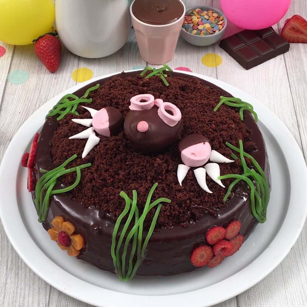 Der Maulwurfkuchen mal anders! Mit richtigen Bananenstücken, mehr Schoko und Karamell. Dieses tierische Dekor sieht gut aus und ist echt lecker! Schokoladiger Genuss mit Stil!