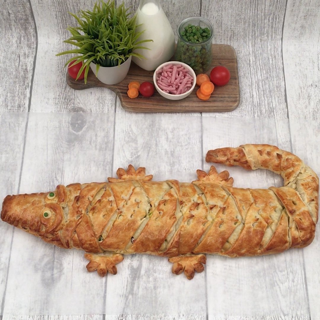 Zum RezeptDieses prallgefüllte Krokodil hat die Wampe voll! Voller Leckereien: Erbsen, Möhrchen, Schinken und Ricotta, eine klassische, vielseitige Füllung. Außerdem ist die Teig-Wickel-Technik ein aufregendes Kochvergnügen.