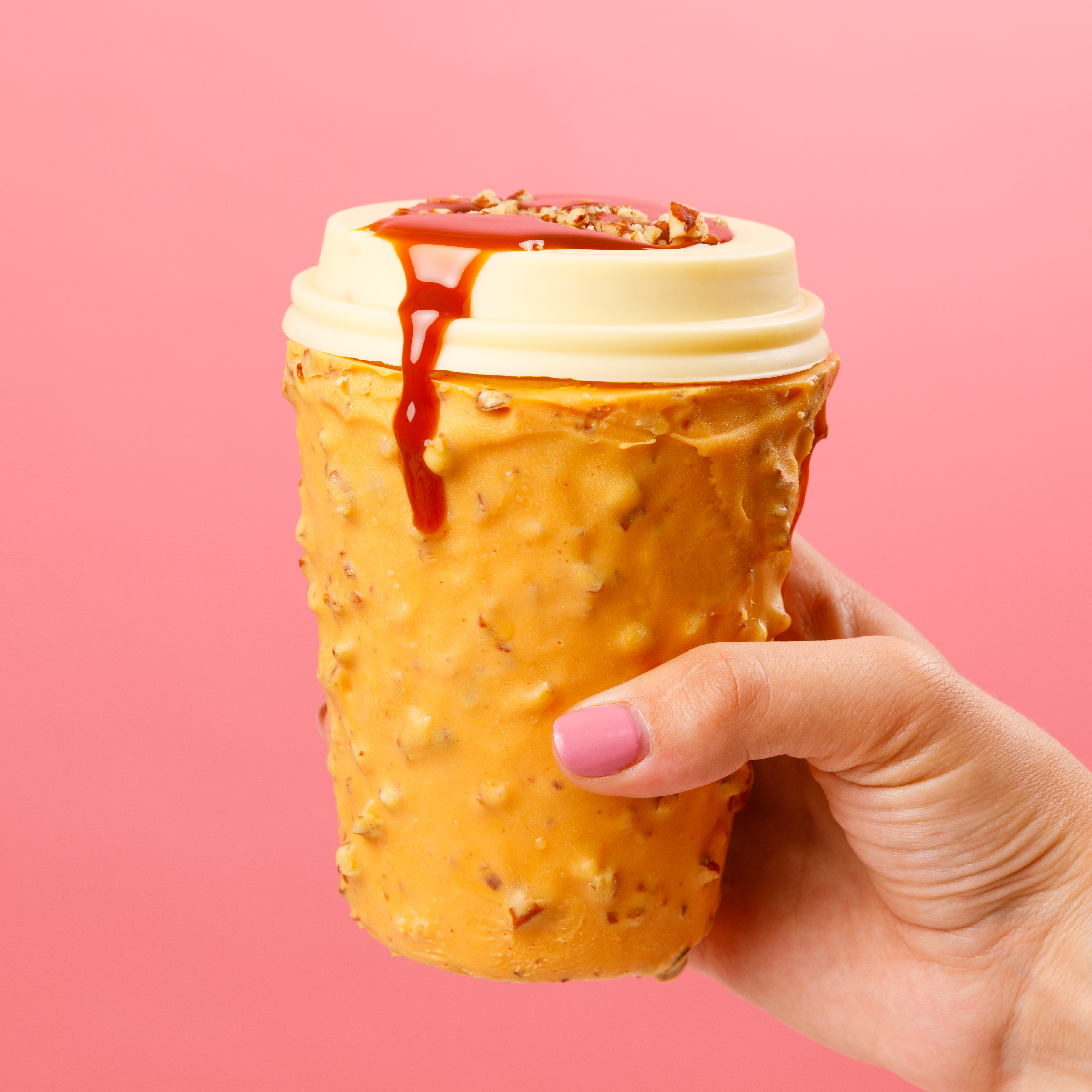 Check out the recipe!We think we’ve outdone ourselves with this one—the tastiest, most creative pumpkin spice latte you’ll ever sip. Drizzled with molten caramel, even the lid is edible—bottoms up!