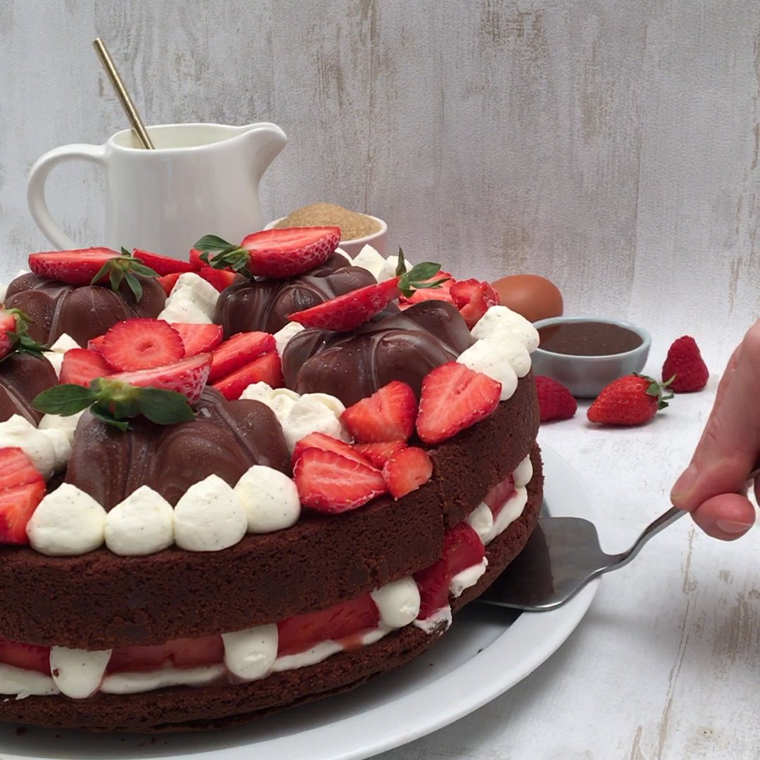 Este pastel de chocolate con fresas tiene 2 pisos de increíble sabor! ¡Las fresas dulces como frutas de temporada son definitivamente nuestras favoritas!