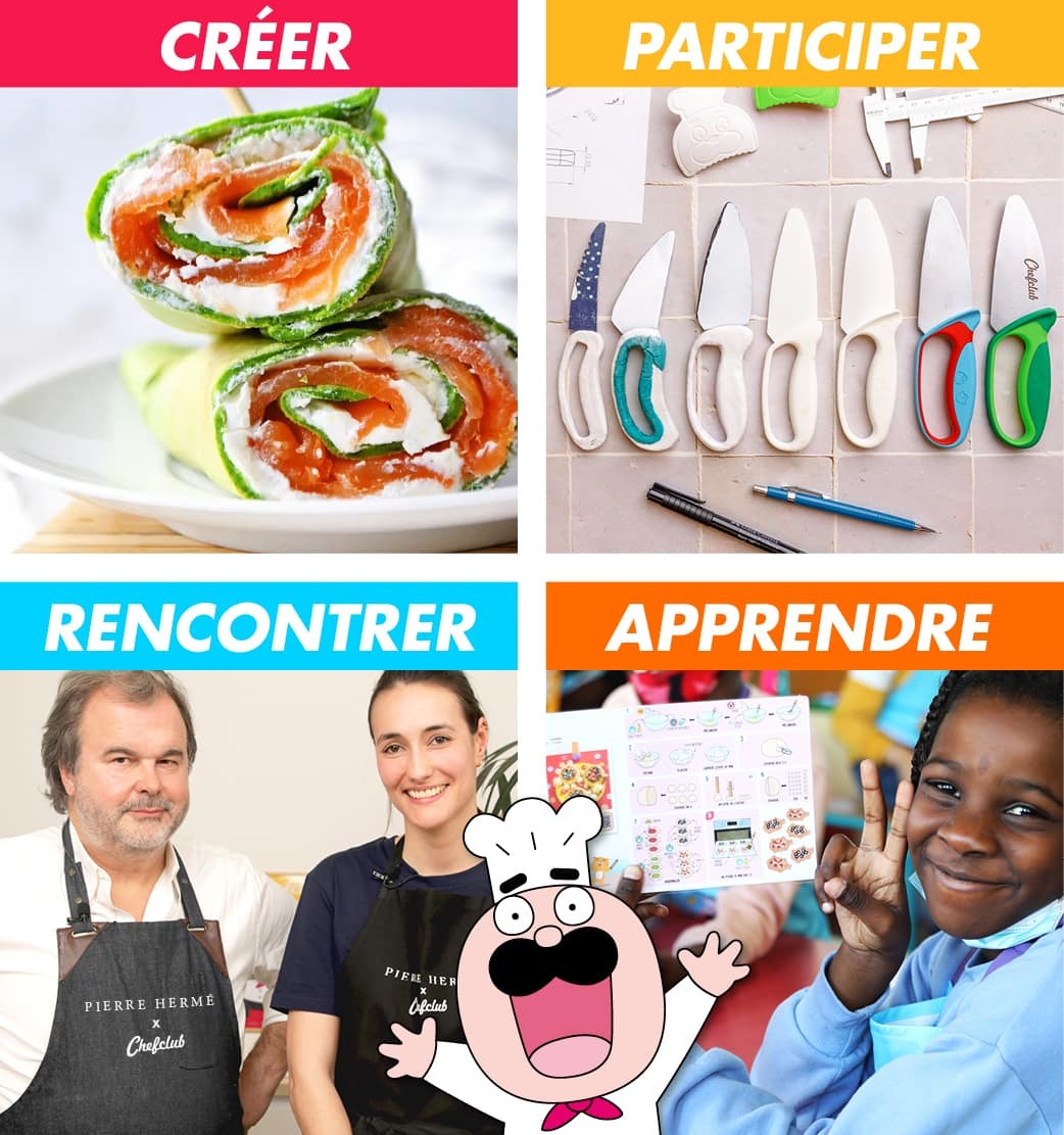 Je découvre le programmeAprès avoir réuni des millions de familles en cuisine et autour de la table, Chefclub poursuit sa mission dans les écoles. Au programme : éveiller et émerveiller les élèves pour leur faire prendre goût à la cuisine, grâce à des kits (ré)créatifs. Sortez vos crayons et vos spatules !