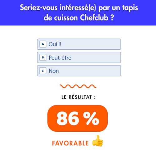 Un grand merci pour votre participation : 86% d'entre vous êtes partants pour un tapis de cuisson Chefclub... Vous le voulez, nous le créons 🙌