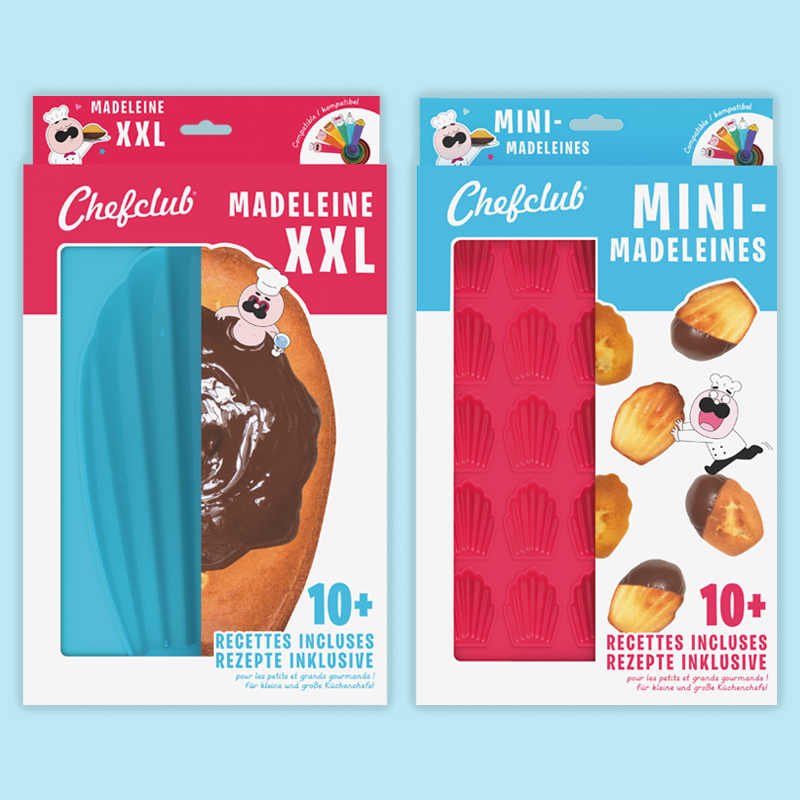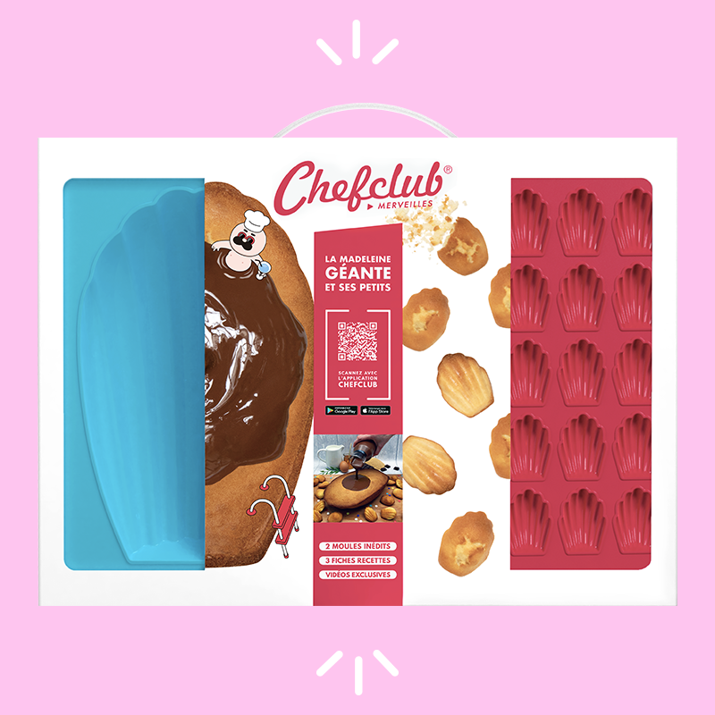 L'idée du moule nous est venue du succès de la recette de madeleine géante créée spécialement pour le Salon du Chocolat. Vos retours extraordinaires pendant l'événement ont été un vrai déclic. C'est grâce à vous que le moule à madeleine géante a vu le jour !