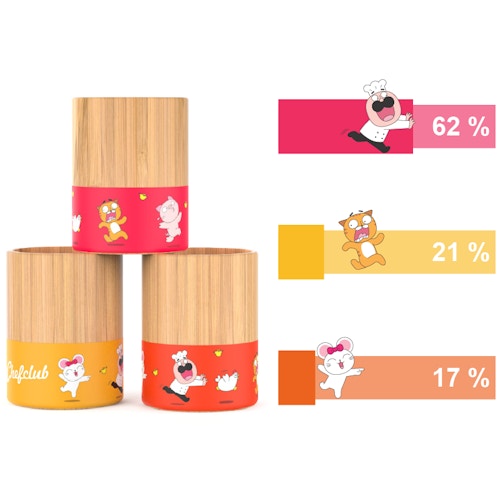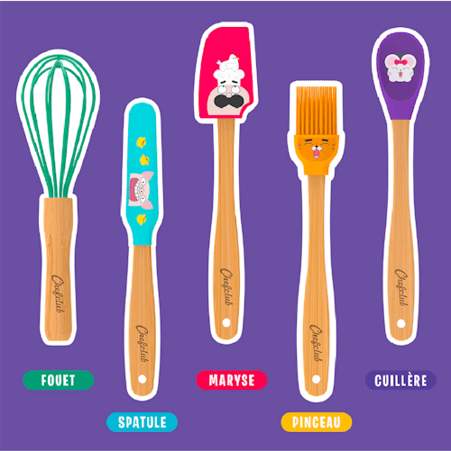 La brigade Chefclub s’invite sur vos ustensiles... et vous décidez de leur esthétique : un manche en bambou, des têtes en silicone robustes et résistantes et des personnages hauts en couleur (et en saveurs) !