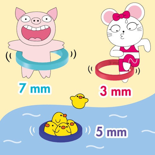 Pour maîtriser l’épaisseur de vos pâtes, nous avons développé un système d’anneaux amovibles. Vos petits chefs pourront ainsi les positionner aux extrémités du rouleau selon l’épaisseur souhaitée : 7 mm, 5 mm ou 3 mm, pour un rendu homogène en toute simplicité ! Roulez jeunesse !