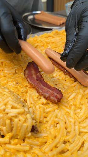 Recettes/Hot Dog au Mac n Cheese et Bacon Frit🧀🌭