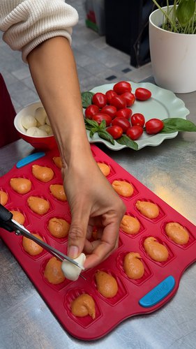 Les brochettes de mini madeleines tomates mozza de l'apéro