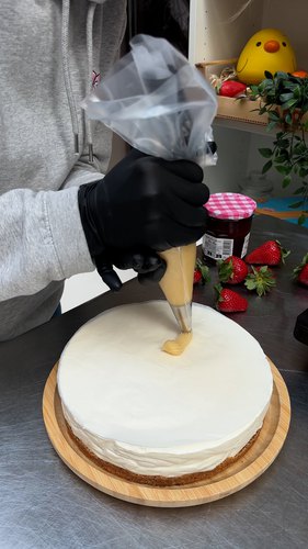 Recettes/Cheesecake aux fraises et churros en fleurs