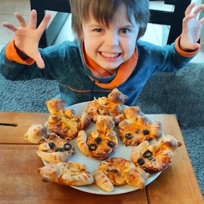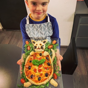 Je découvre la recetteDouce, câline, tendre… régalez-vous avec cette pizza-chat à croquer ! Un bon coup de pâte et le tour est joué ! Chat va être trop bon !