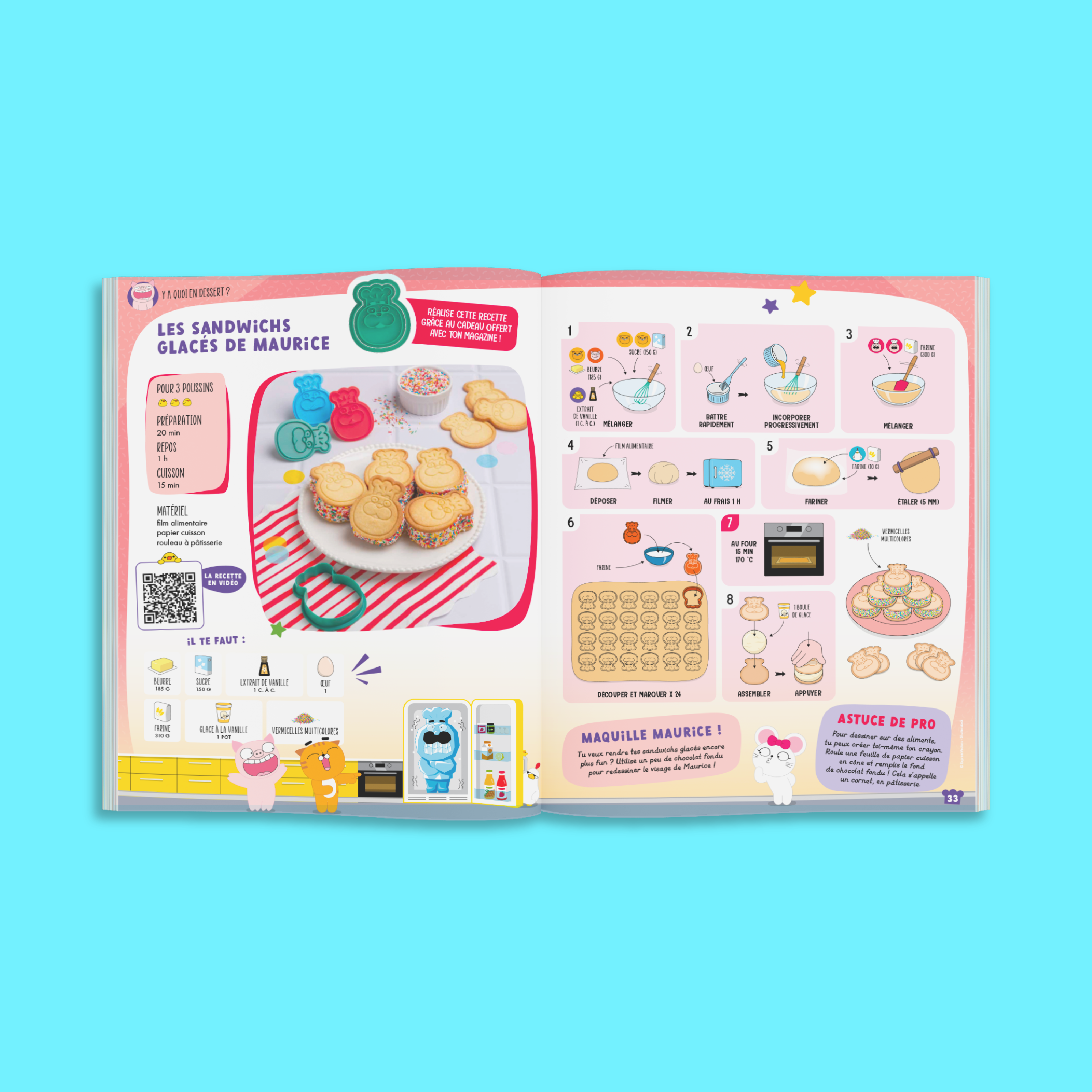 Pour vous accompagner dans cette aventure, vous trouverez dans chaque magazine un emporte-pièce inédit à collectionner à l’effigie des Chefclub Friends. Dans ce premier numéro, l’emporte-pièce Maurice, disponible en 6 couleurs, vous permettra de réaliser la recette exclusive du magazine : les sandwichs glacés de Maurice. Un voyage gourmand et éducatif qui débutera sous le soleil de l’été pour les petits chefs !