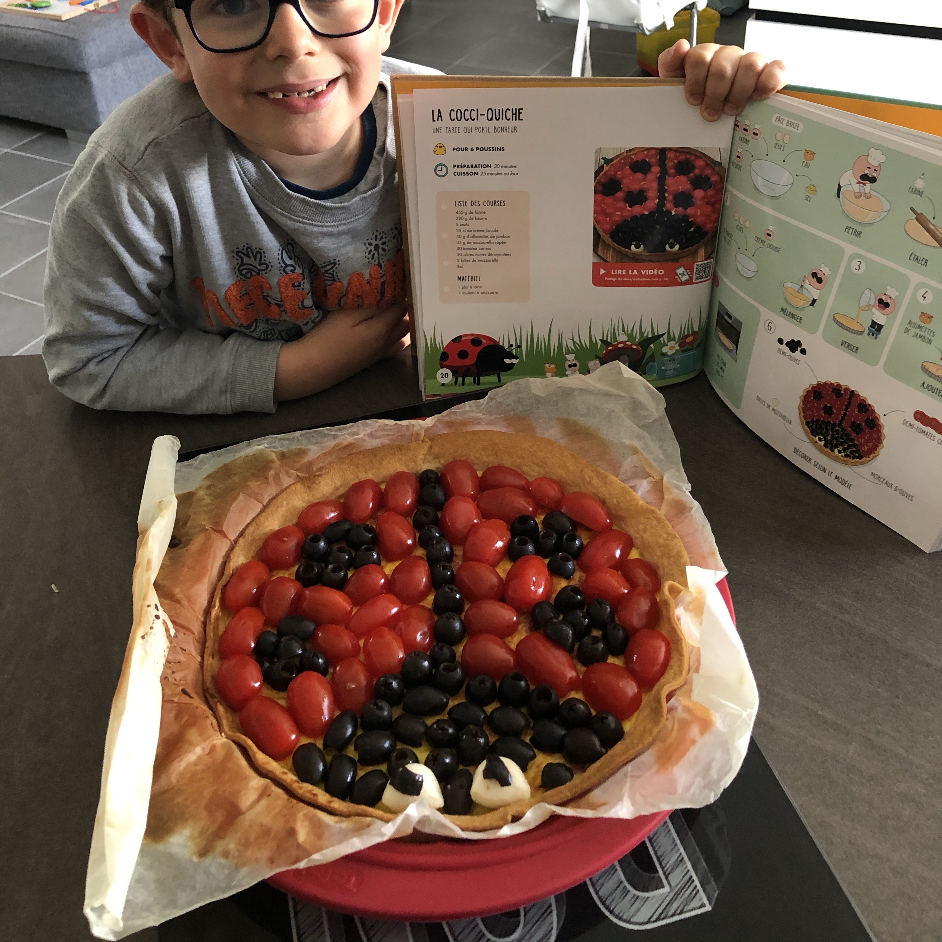 Ma petite kiiiiisinière Candice, 3 ans et demi qui a adoré pétrir la pâte, l'étaler, et mélanger les oeufs à la crème !!