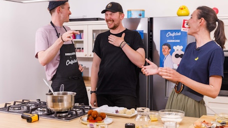 Je découvre la recetteLe Chef Ambroise, accompagné d’un invité surprise, nous a dévoilé en direct sa recette de croquettes avec comme seul ingrédient : une boîte de sardines ! Direction les fourneaux pour cuisiner et chanter avec les sardines.