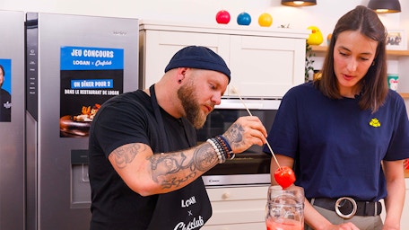 Je découvre la recetteChef de son restaurant l’Artiste en Belgique, Logan vous a dévoilé en live sa recette signature : la pomme d’amour. Alors, direction les fourneaux pour tout connaître de sa pomme.