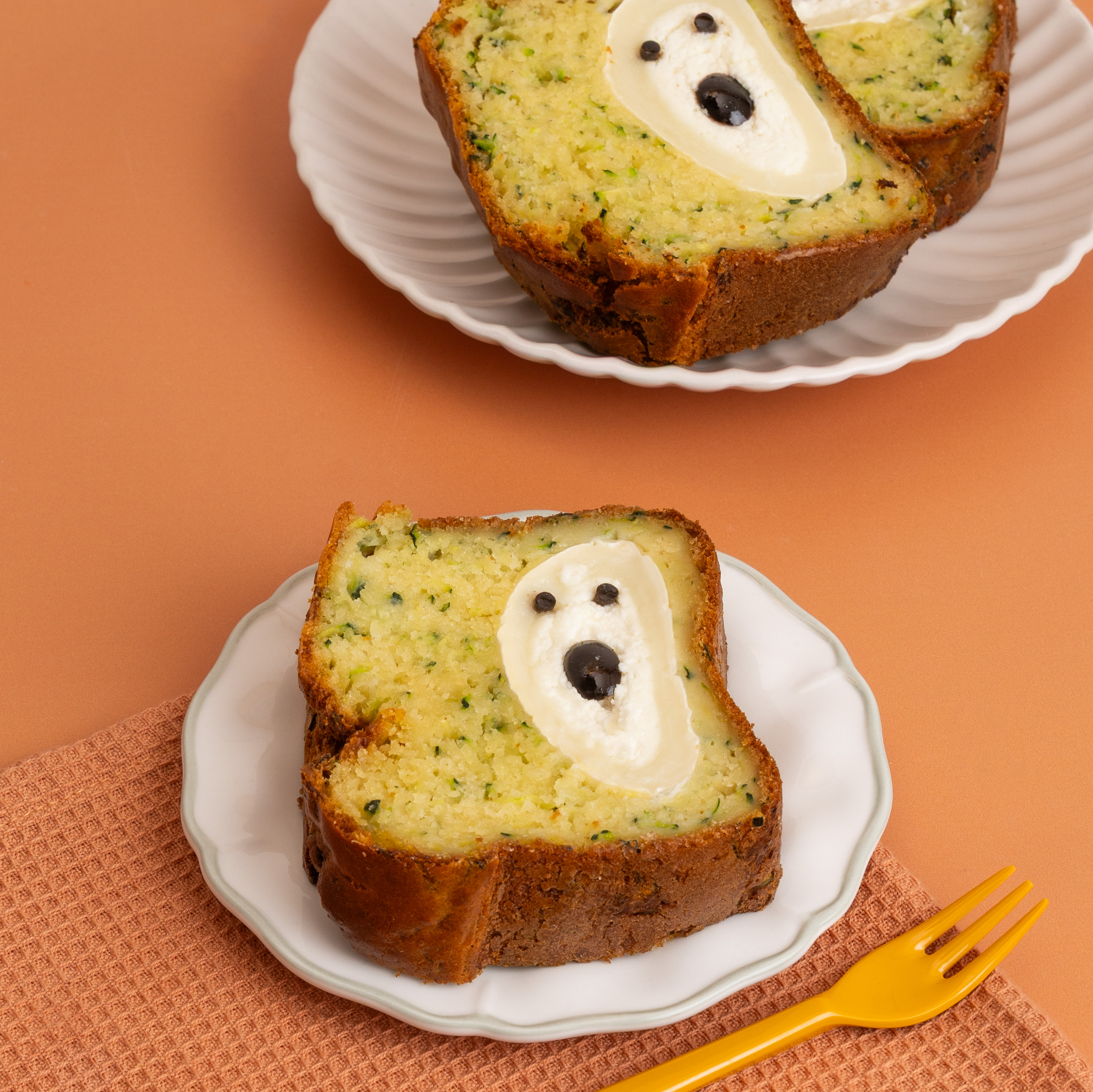 Je tremble de peur !Un cake salé qui cache bien son secret. Sous sa croûte dorée, le chèvre fondant rencontre la douceur de la courgette râpée pour un mariage parfait. Mais attention : à la découpe, les fantômes se dévoilent, comme sculptés dans la mie. Un plat aussi moelleux, savoureux et ensorcelé.