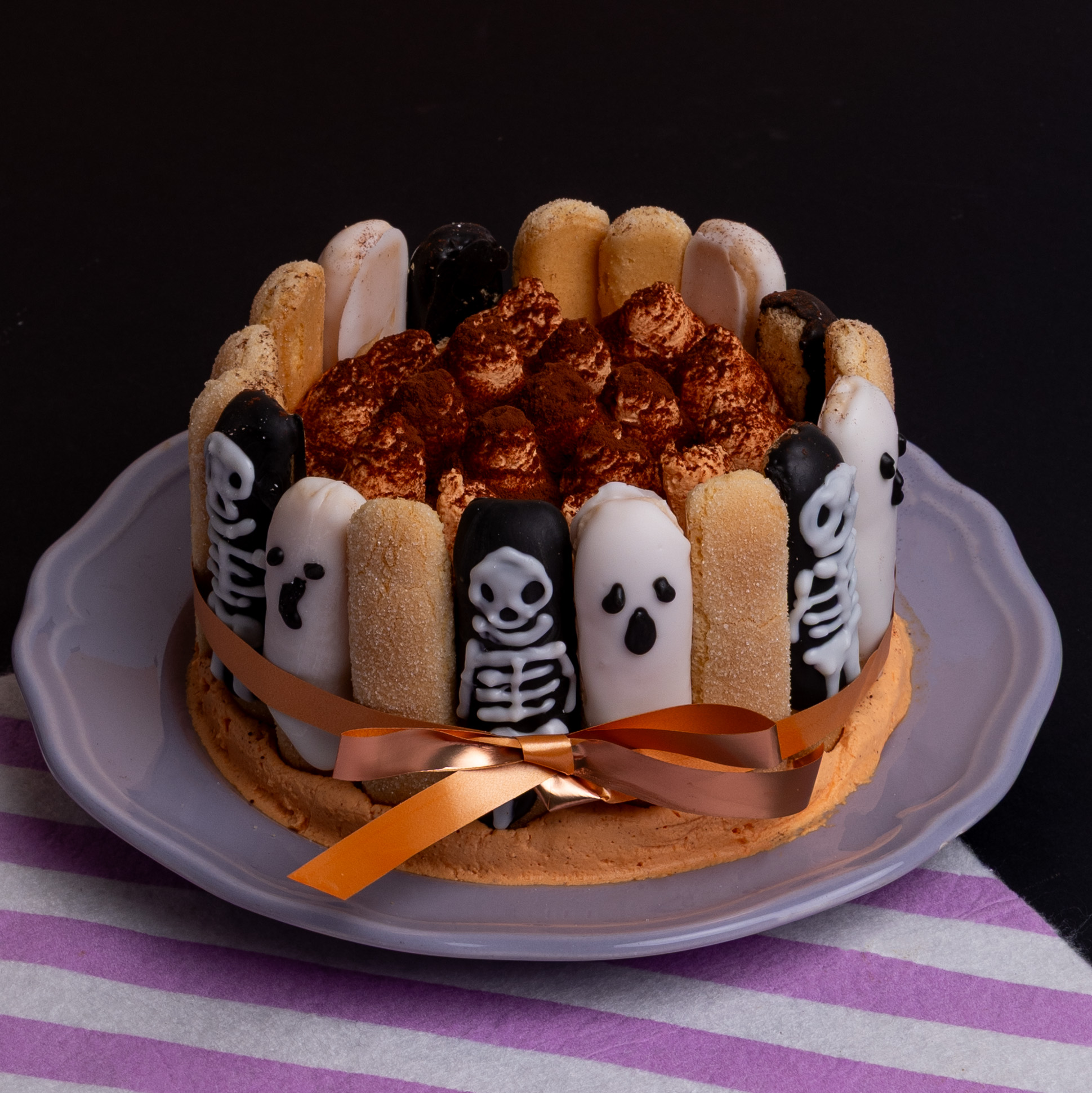 J’ai la peur au ventre !Les squelettes se sont donné rendez-vous autour d’un dessert mystérieux… Entre deux couches de mascarpone, ils veillent sur un tiramisu moelleux à souhait. Le cacao s’assombrit, les fantômes se rapprochent...le sort est jeté !