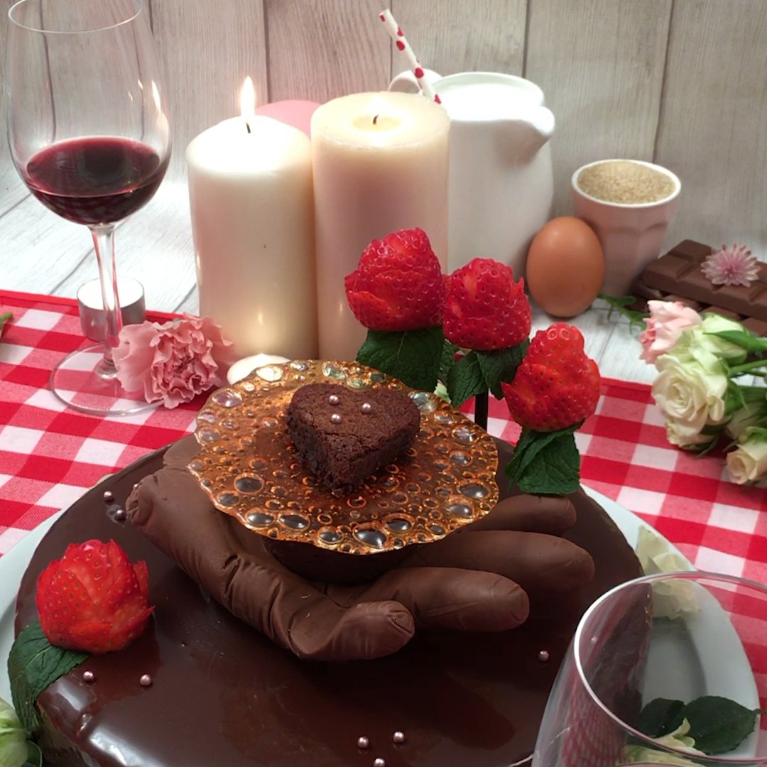 Une main de chocolat que l’on peut tenir, mais qu’on préfère attraper du bout des doigts pour la croquer ! Moralité : ne jamais remettre un dîner romantique à deux-mains...