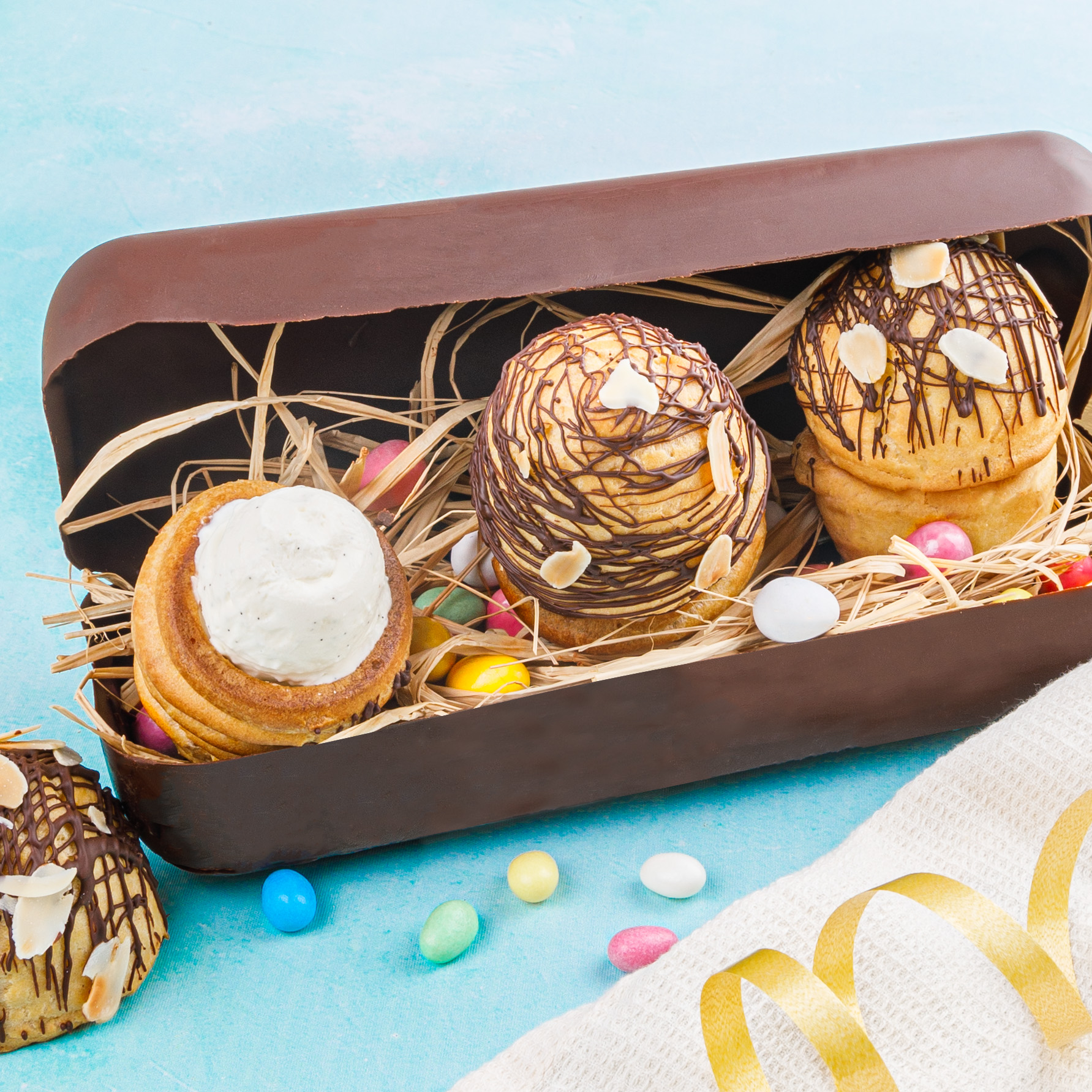 Je découvreIl est temps de rivaliser d'inventivité pour supplanter les œufs tout choco. Découvrez la recette inédite des profiteroles dans leur boîte à œufs !