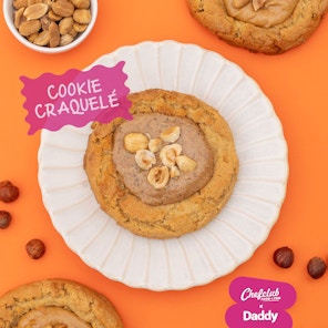 À découvrir au pop-up : l’intemporel cookie au chocolat noir, croustillant et moelleux à la fois, mais aussi deux créations inédites signées Chefclub – praliné noisette et praliné cacahuètes – qui réinventent ce grand favori avec une touche encore plus généreuse.
