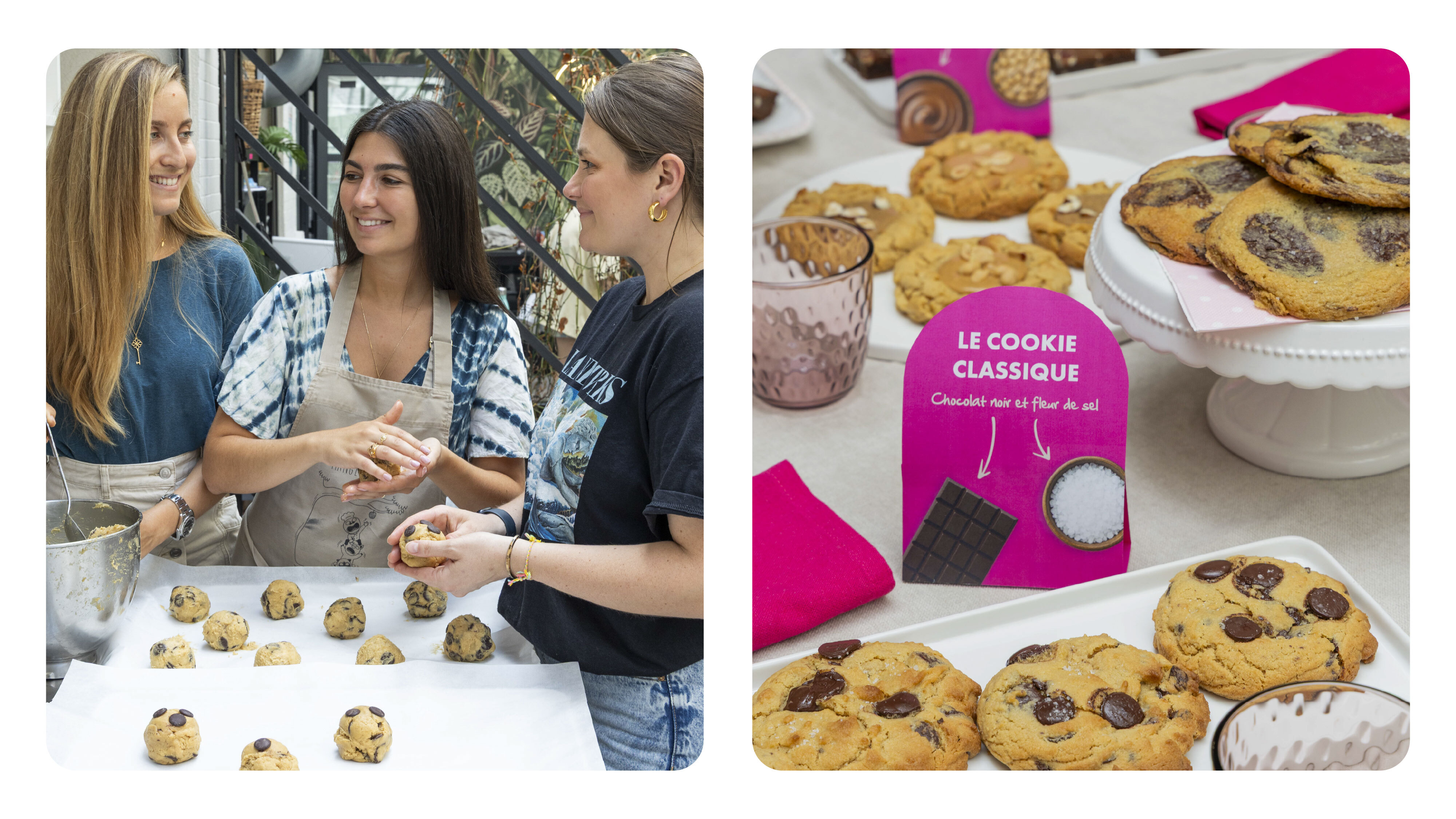 À découvrir au pop-up : l’intemporel cookie au chocolat noir, croustillant et moelleux à la fois, mais aussi deux créations inédites signées Chefclub – praliné noisette et praliné cacahuètes – qui réinventent ce grand favori avec une touche encore plus généreuse.