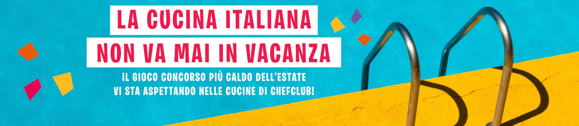 Fino al 15 di luglio scatta una foto delle tue vacanze insieme al libro IL MEGLIO DELLE RICETTE SALATE DI CHEFCLUB e taggaci usando l'hashtag #CHEFCLUBESTATE. A bordo piscina, al mare, in valigia o in vacanza, fai viaggiare il tuo ricettario e scatta la foto più bella per condividerla con noi!