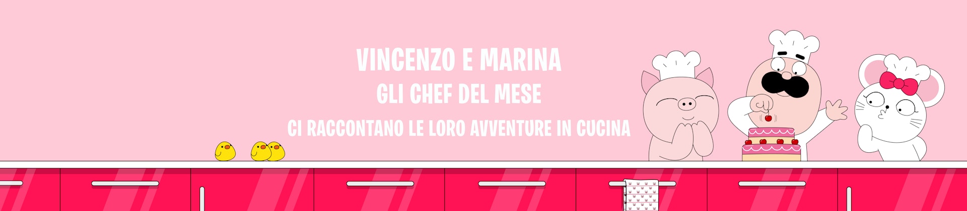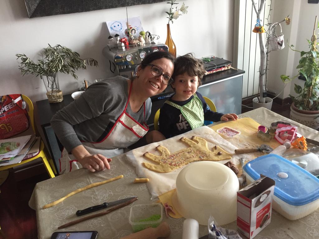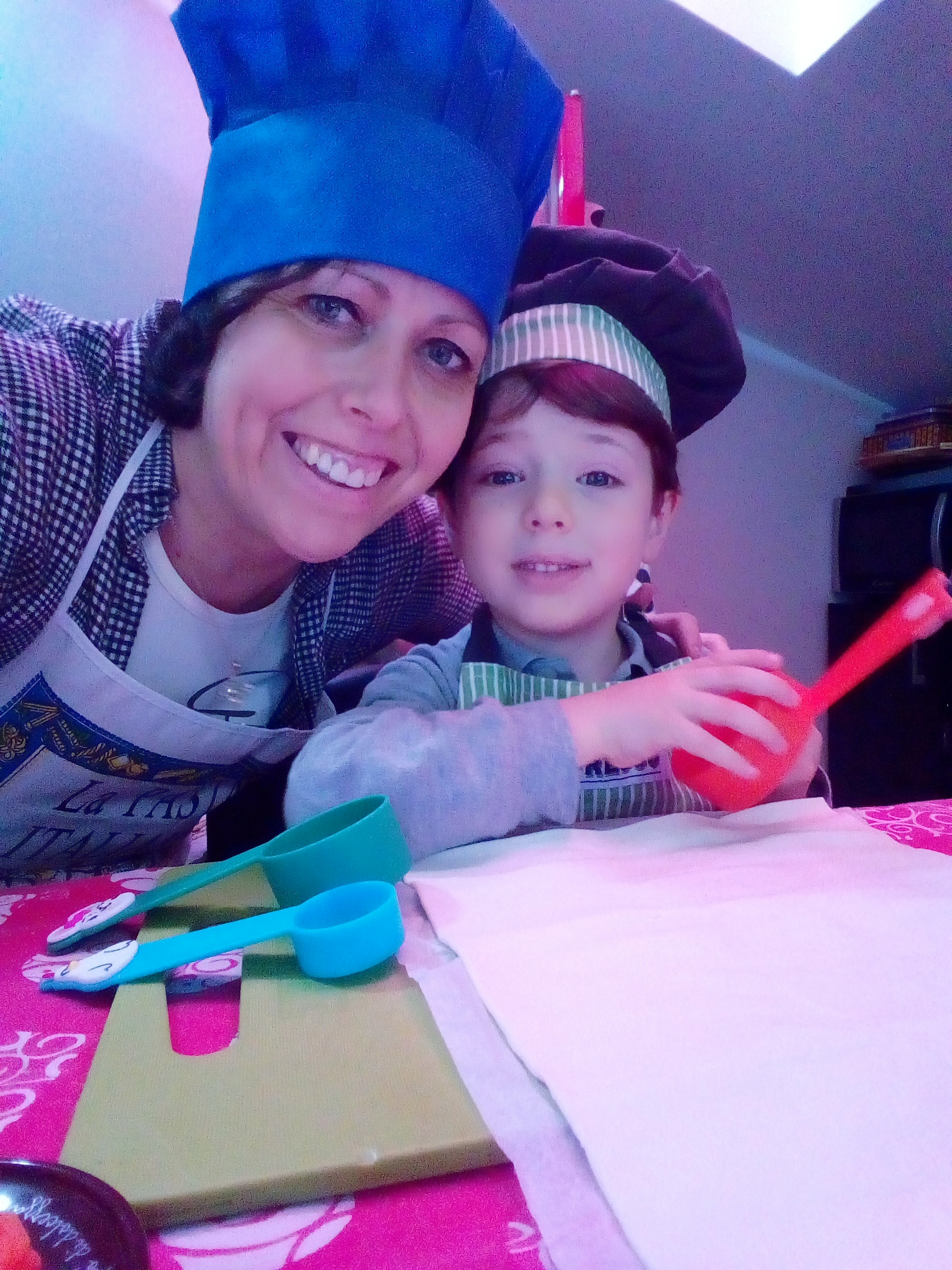 Io (Marina) e il mio piccolo chef Vincenzo cuciniamo sempre fianco a fianco. La cucina per noi è da sempre una grande passione. Ci piace inventare, aprire il frigo e preparare qualcosa con quel che troviamo. Vincenzo è di grande aiuto soprattutto quando ci sono dolci da cucinare: io gli passo gli ingredienti e lui mescola, inforniamo e mangiamo! A casa infatti siamo tutti golosi di dolci e ogni occasione è buona per organizzare un pranzo o una cena con parenti e amici e in tavola non manca mai un dolce fatto in casa!